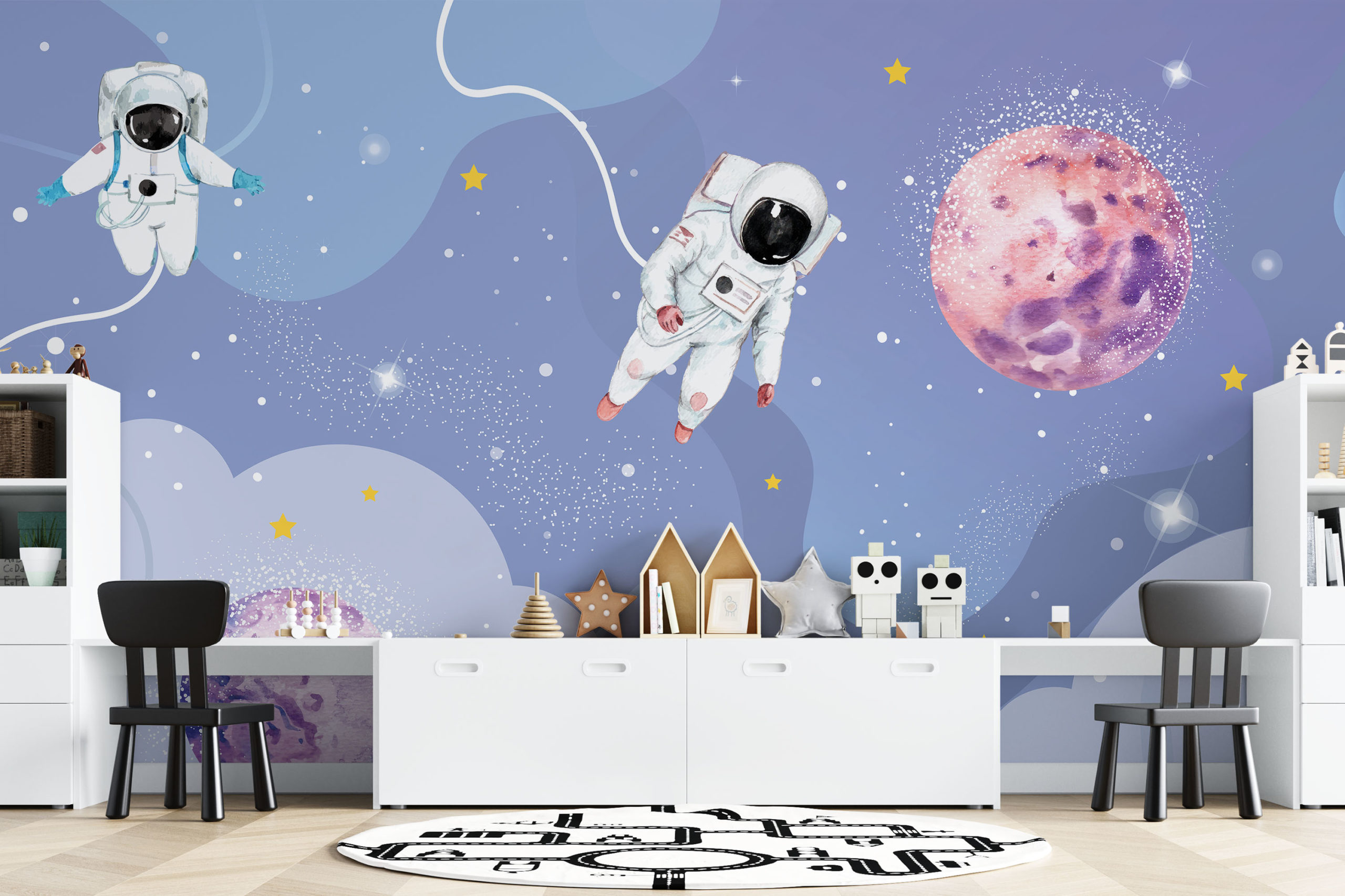 Voor échte ruimtefans hebben we dit toffe ruimtebehang ontworpen, compleet met astronauten, planeten en sterren. We drukken deze toffe schildering op sterk, krasvast en waterproof behang, zodat je kind er jarenlang plezier van heeft.[/vc_column_text][porto_block id="4285" name="contact-behang"][vc_empty_space height="20px"][/vc_column][vc_column width="1/2"][porto_block id="1002" name="technische-details-behang"][/vc_column][/vc_row][vc_row][vc_column width="1/2"][vc_column_text]