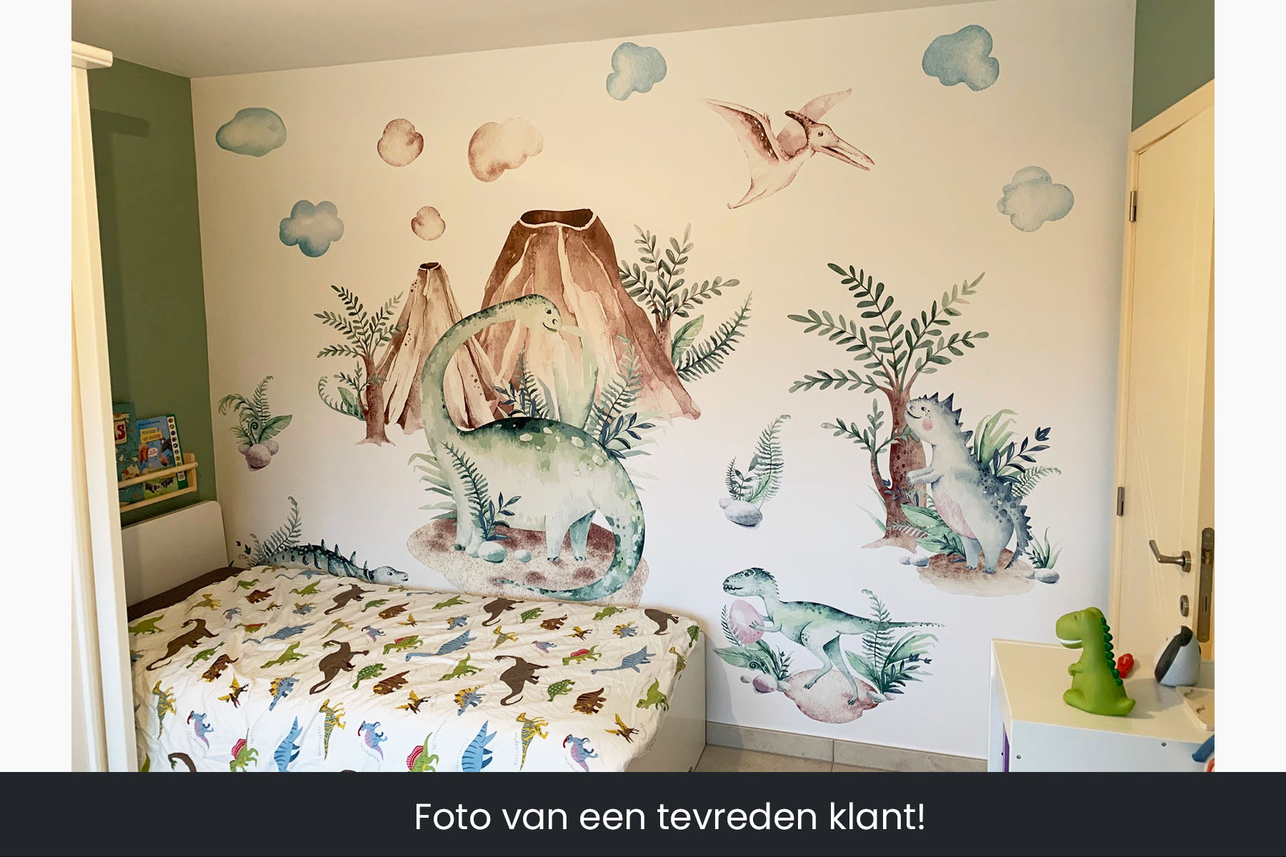 Reis 230 miljoen jaar terug in de tijd met ons dinosauriërs behang. Deze vriendelijke dino's zijn leuk voor de echte fans. We drukken deze toffe schildering op sterk, krasvast en waterproof behang, zodat je zoon er jarenlang plezier van heeft.[/vc_column_text][porto_block id="4285" name="contact-behang"][vc_empty_space height="20px"][/vc_column][vc_column width="1/2"][porto_block id="1002" name="technische-details-behang"][/vc_column][/vc_row][vc_row][vc_column width="1/2"][vc_column_text]