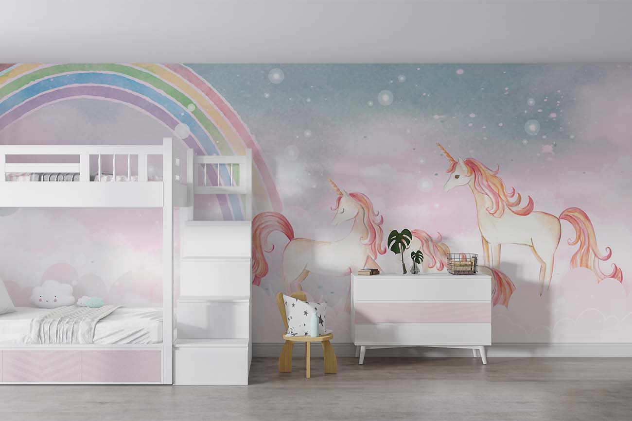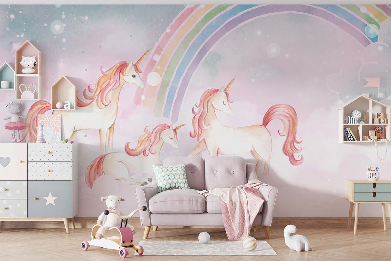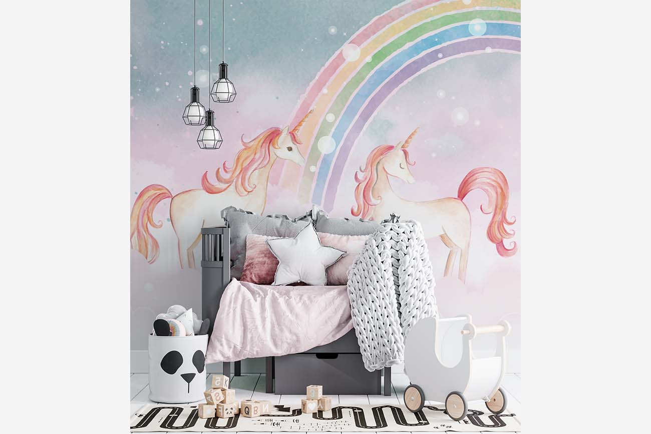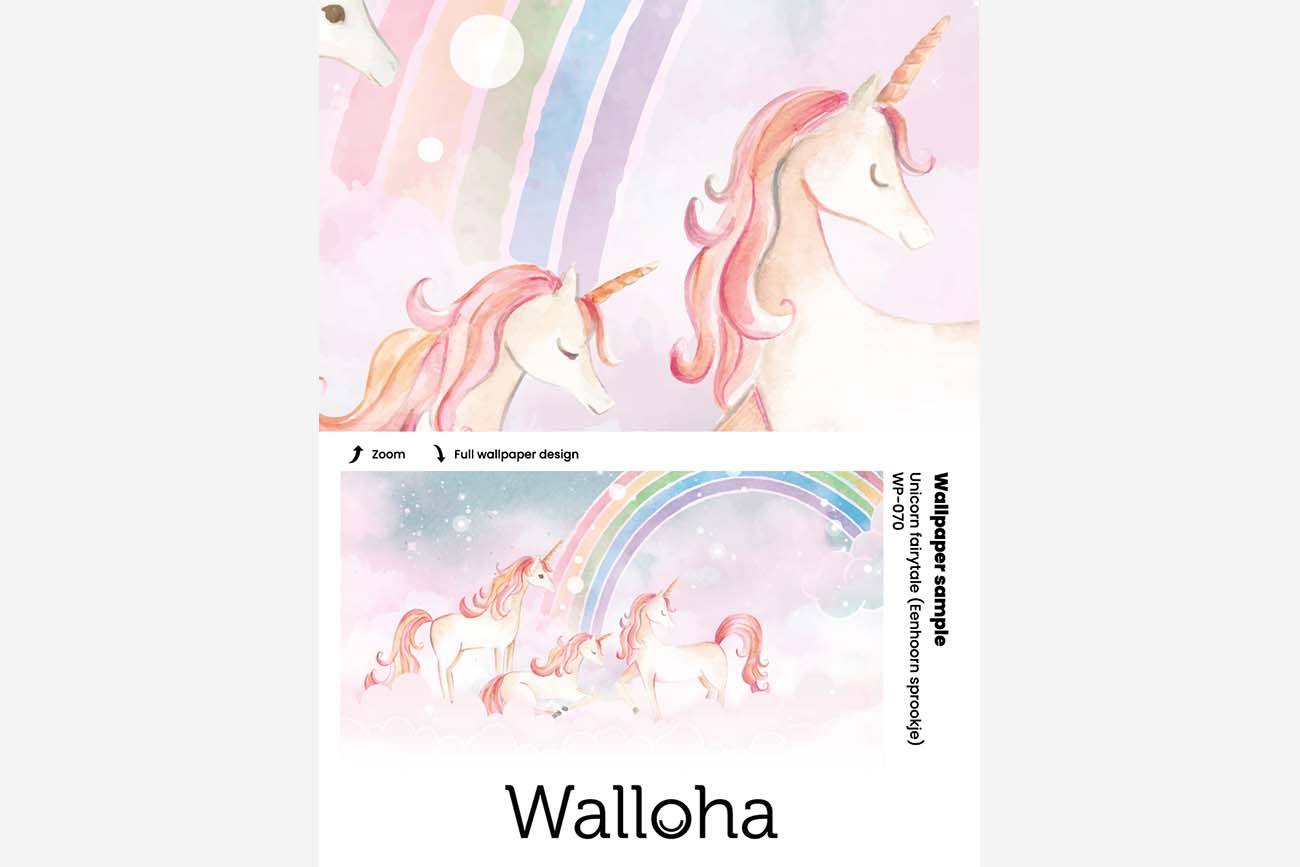Tover de kinderkamer om in een sprookjesland met dit magische eenhoorn behang. Aan het einde van de regenboog wachten drie roze eenhoorns op je, die in de wolken leven. Een prachtig behangontwerp om je kamer een zoete uitstraling te geven. We drukken deze prachtige schildering op sterk, krasvast en waterproof behang, zodat je kind er jarenlang plezier van heeft.[/vc_column_text][porto_block id="4285" name="contact-behang"][vc_empty_space height="20px"][/vc_column][vc_column width="1/2"][porto_block id="1002" name="technische-details-behang"][/vc_column][/vc_row][vc_row][vc_column][vc_separator color="custom" border_width="2" style="solid" accent_color="#f4f4f4"][vc_empty_space height="5px"][/vc_column][/vc_row][vc_row][vc_column width="1/2"][vc_column_text]