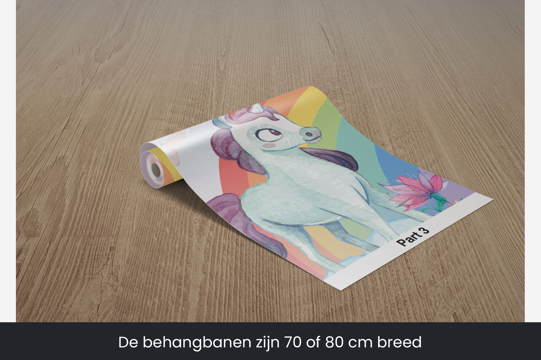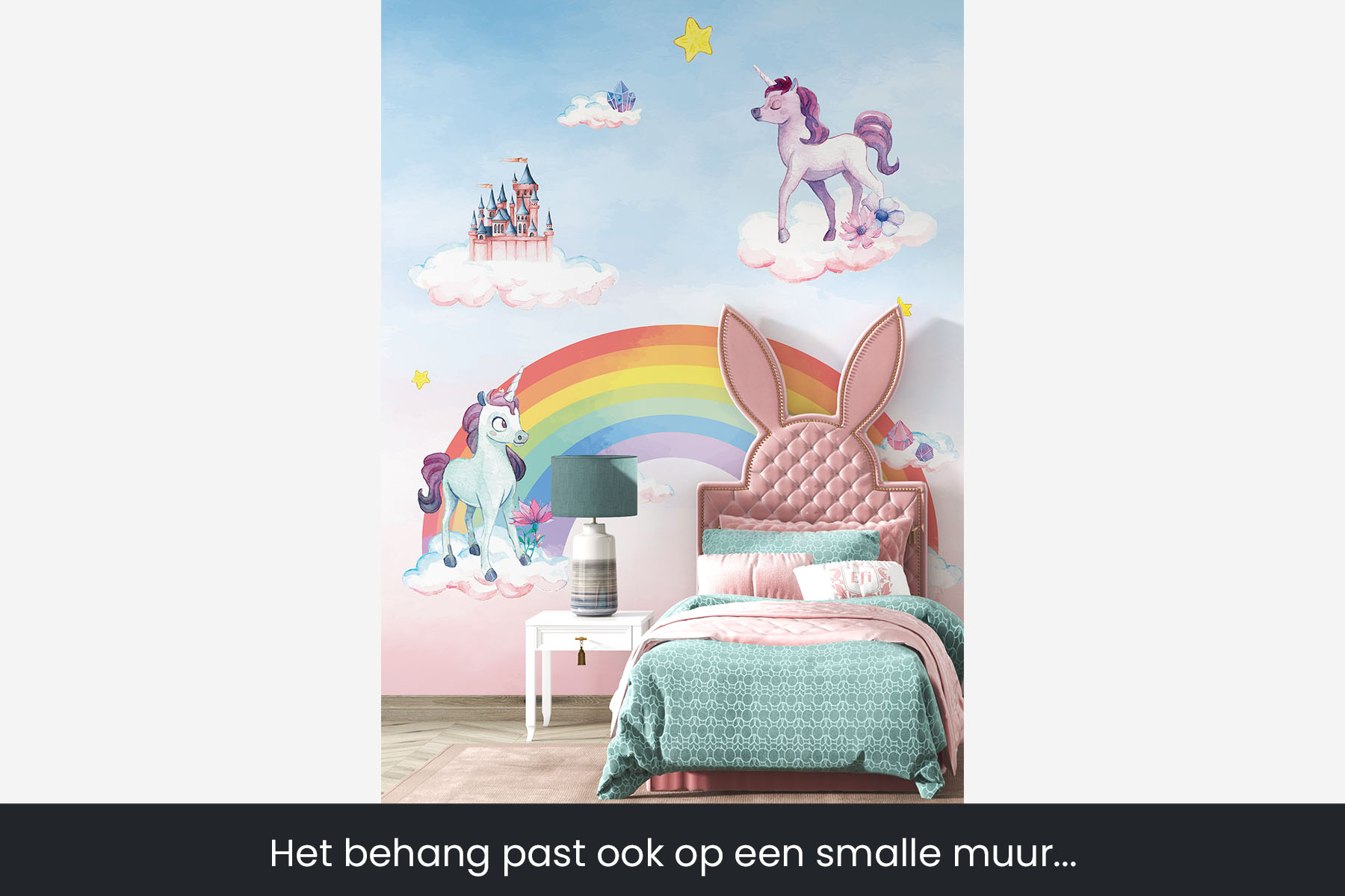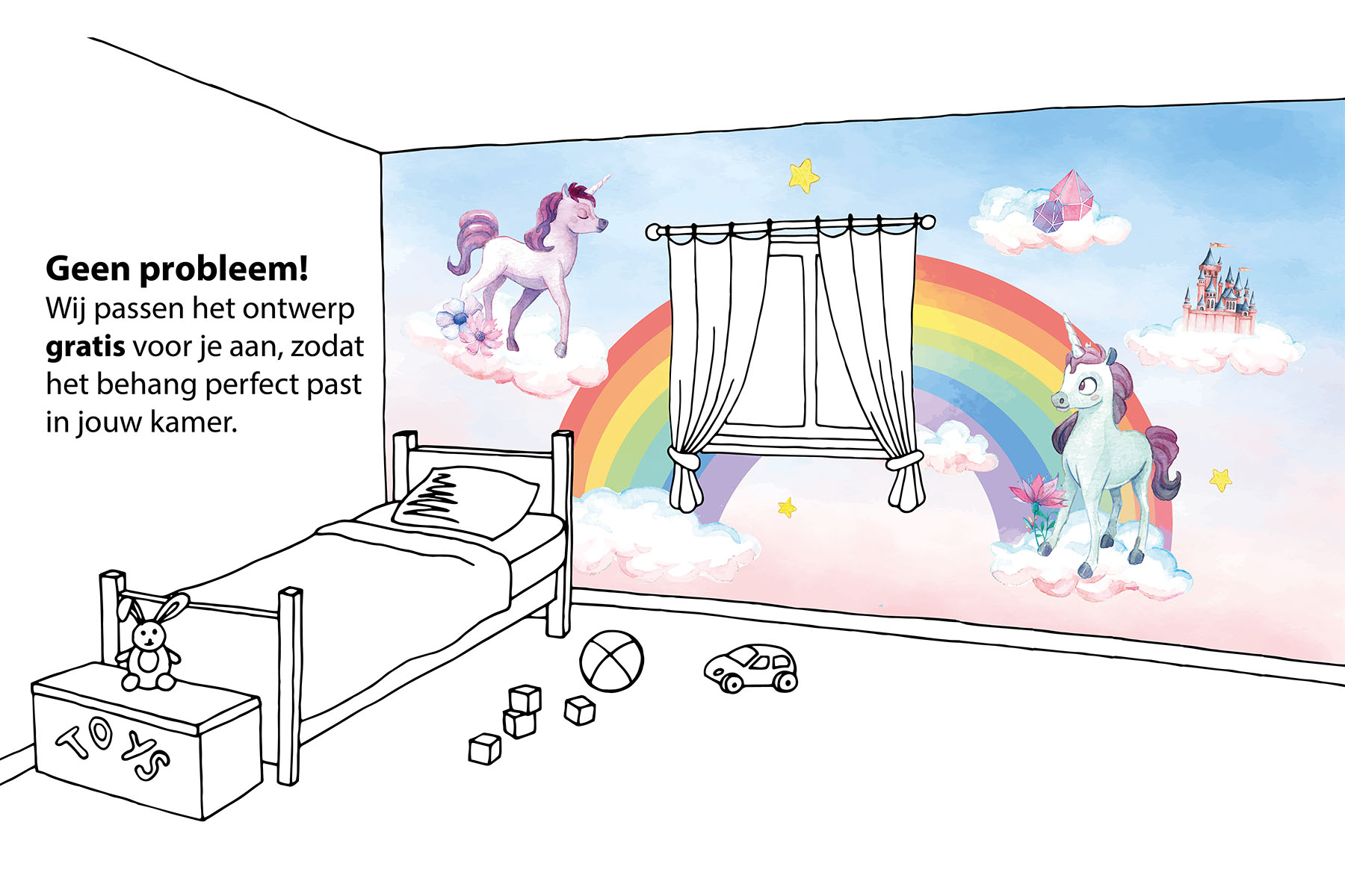 Tassen, kleding, oorbellen, beddengoed; wil jouw dochter ook álles met een eenhoorn? Dan zal ze dit unicorn-behang ook geweldig vinden! Door de mooie tekeningen en vrolijke kleuren is het echt een behangprint om blij van te worden. We drukken de aquarel schildering op sterk, krasvast en waterproof behang, zodat je dochter er jarenlang plezier van heeft.[/vc_column_text][porto_block id="4285" name="contact-behang"][vc_empty_space height="20px"][/vc_column][vc_column width="1/2"][porto_block id="1002" name="technische-details-behang"][/vc_column][/vc_row][vc_row][vc_column width="1/2"][vc_column_text]