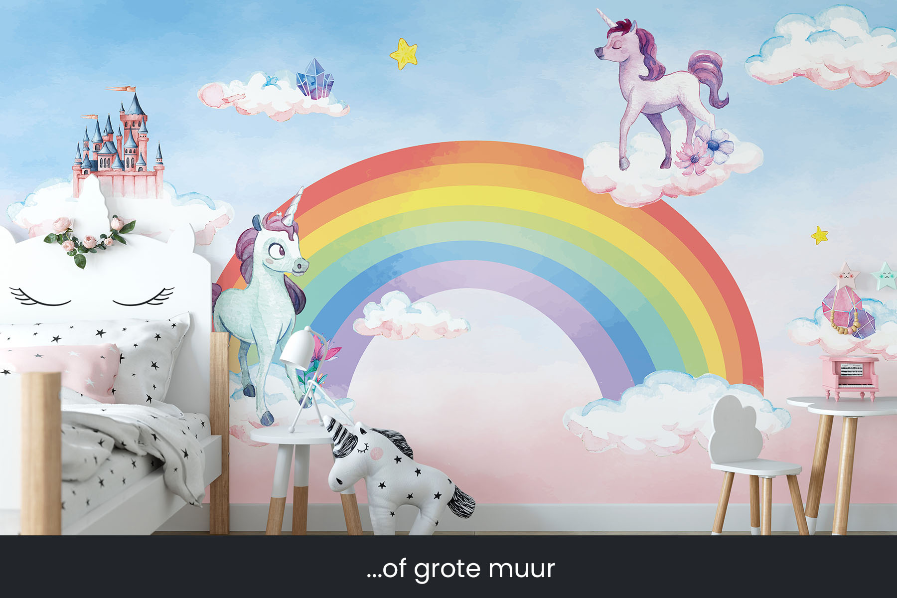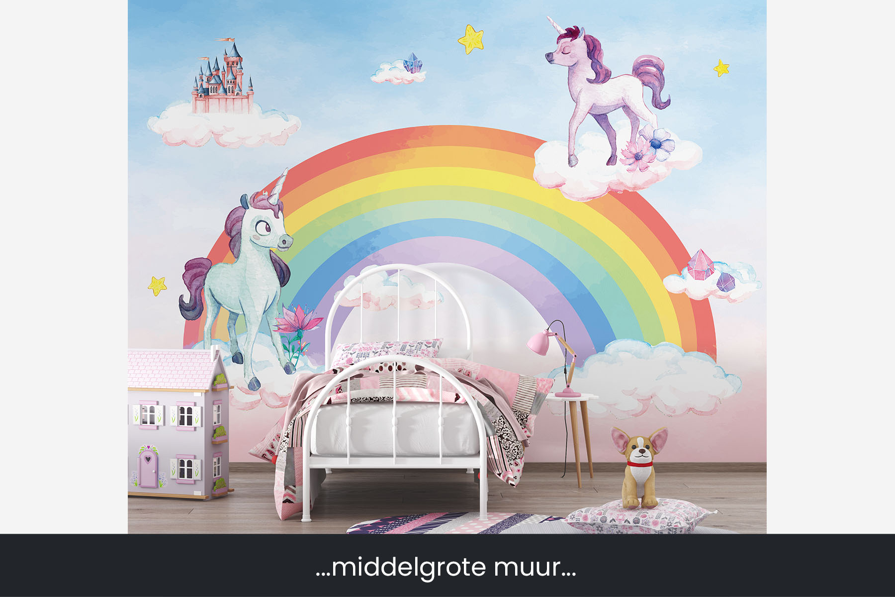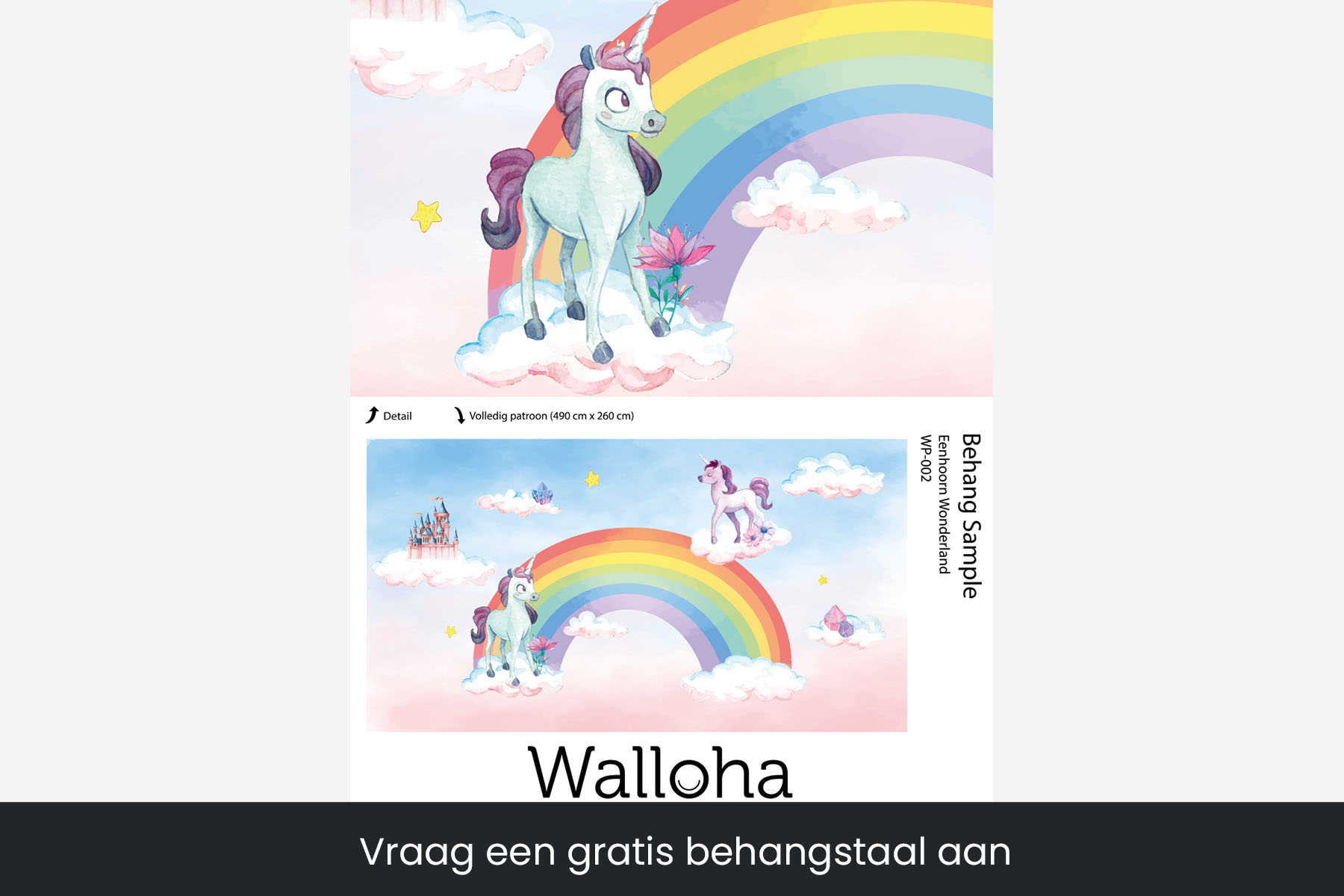 Tassen, kleding, oorbellen, beddengoed; wil jouw dochter ook álles met een eenhoorn? Dan zal ze dit unicorn-behang ook geweldig vinden! Door de mooie tekeningen en vrolijke kleuren is het echt een behangprint om blij van te worden. We drukken de aquarel schildering op sterk, krasvast en waterproof behang, zodat je dochter er jarenlang plezier van heeft.[/vc_column_text][porto_block id="4285" name="contact-behang"][vc_empty_space height="20px"][/vc_column][vc_column width="1/2"][porto_block id="1002" name="technische-details-behang"][/vc_column][/vc_row][vc_row][vc_column width="1/2"][vc_column_text]