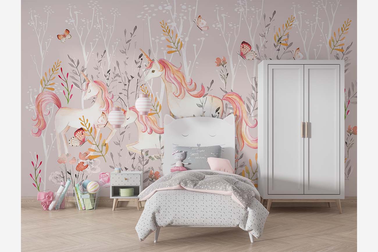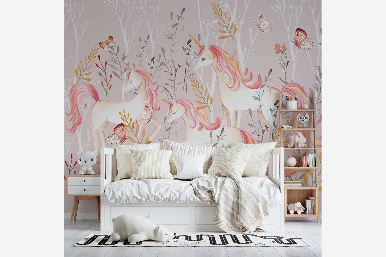 Tover de kinderkamer om in een sprookjesland met dit mooie eenhoorn behang. Tussen de bomen, bloemen en vlinders zijn drie roze eenhoorns te vinden, die maar wat graag jouw kinderkamer een stukje mooier willen maken. We drukken deze prachtige schildering op sterk, krasvast en waterproof behang, zodat je kind er jarenlang plezier van heeft.[/vc_column_text][porto_block id="4285" name="contact-behang"][vc_empty_space height="20px"][/vc_column][vc_column width="1/2"][porto_block id="1002" name="technische-details-behang"][/vc_column][/vc_row][vc_row][vc_column][vc_separator color="custom" border_width="2" style="solid" accent_color="#f4f4f4"][vc_empty_space height="5px"][/vc_column][/vc_row][vc_row][vc_column width="1/2"][vc_column_text]