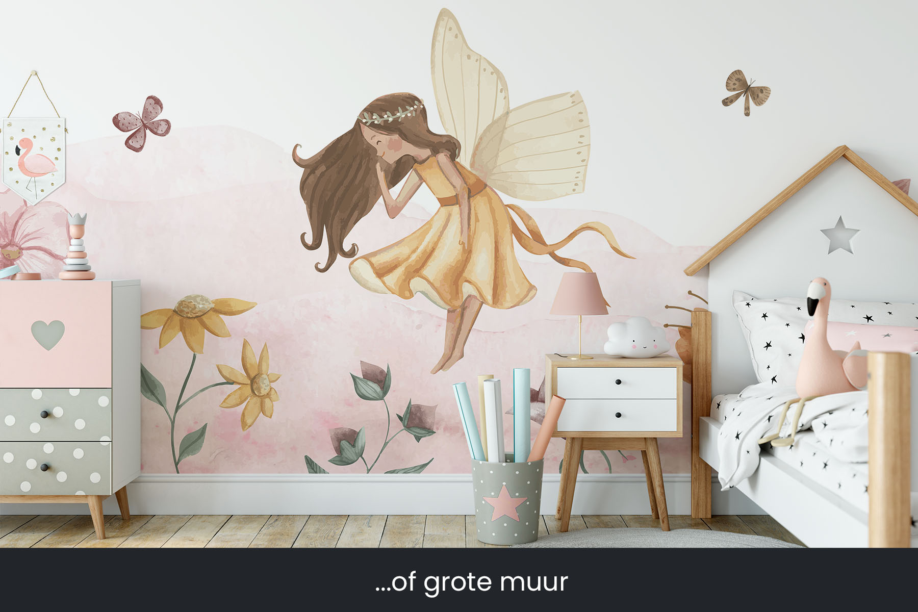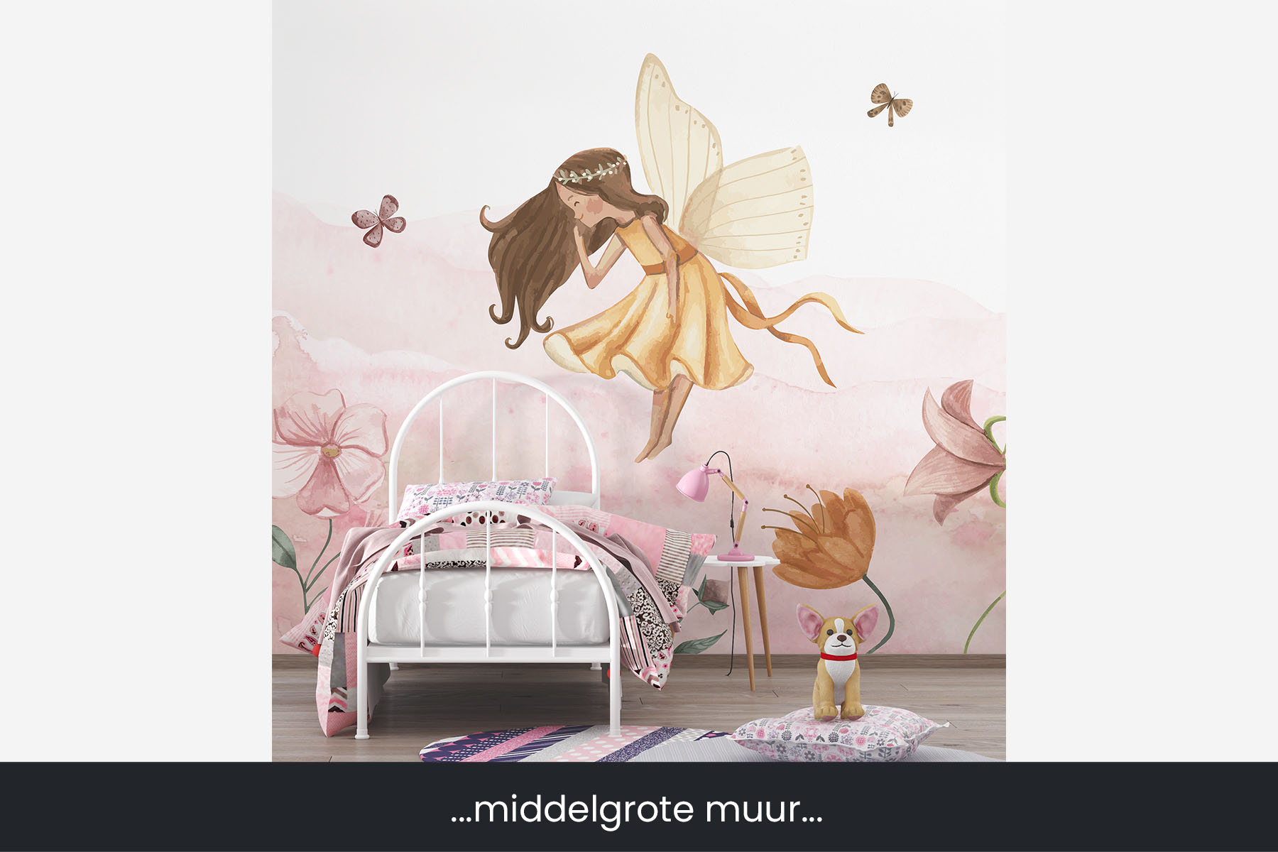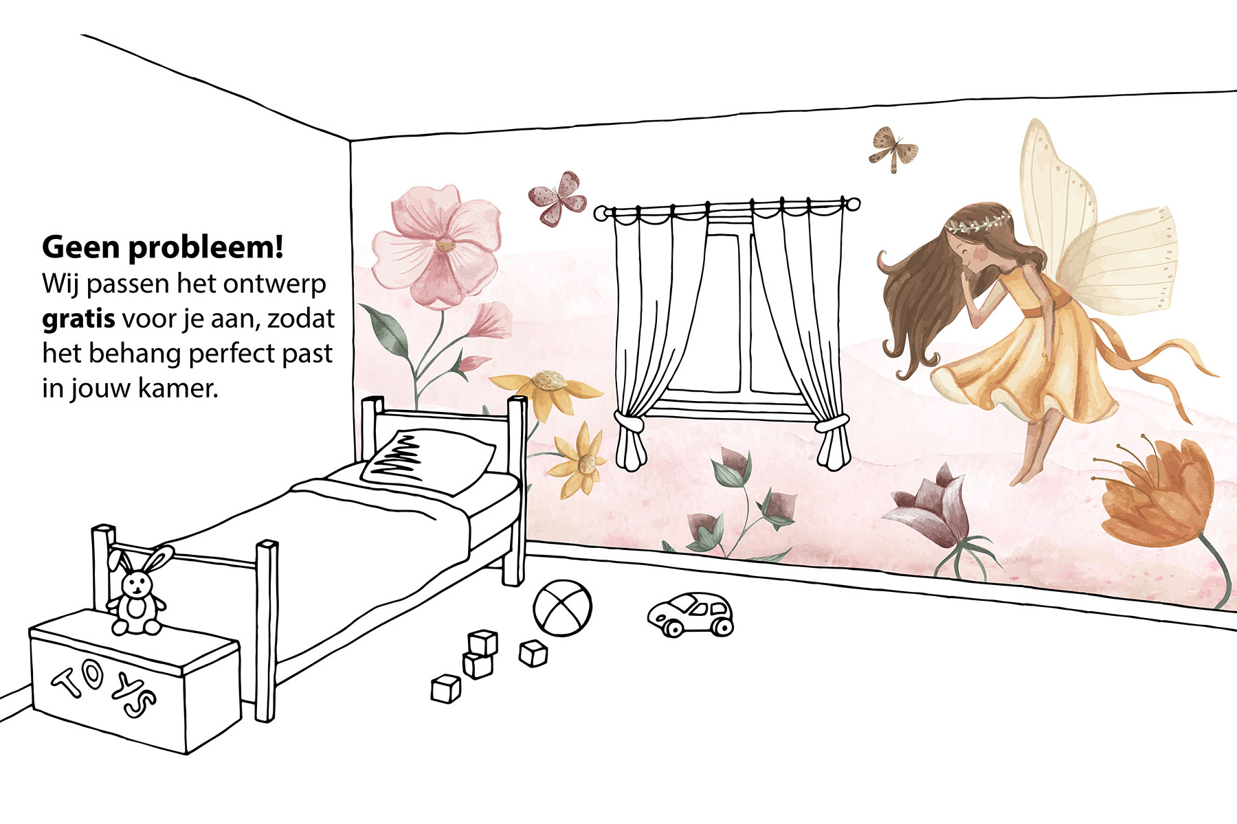 Fleur de kamer van je dochter op met deze Fee in roze bloemenzee, een schattig feeën behang met een feetje tussen de bloemen. We drukken deze prachtige schildering op sterk, krasvast en waterproof behang, zodat je dochter er jarenlang plezier van heeft.[/vc_column_text][porto_block id="4285" name="contact-behang"][vc_empty_space height="20px"][/vc_column][vc_column width="1/2"][porto_block id="1002" name="technische-details-behang"][/vc_column][/vc_row][vc_row][vc_column][vc_separator color="custom" border_width="2" style="solid" accent_color="#f4f4f4"][vc_empty_space height="5px"][/vc_column][/vc_row][vc_row][vc_column width="1/2"][vc_column_text]
