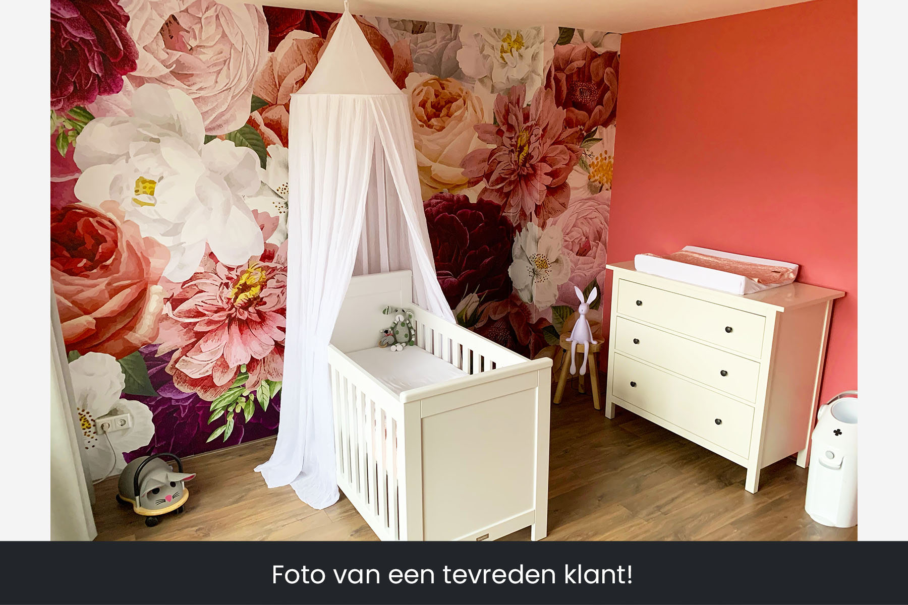 Met dit dromerige bloemenbehang met verschillende soorten rozen geef je een klassieke, maar ook moderne uitstraling aan de babykamer van je dochter. We drukken deze prachtige schildering op sterk, krasvast en waterproof behang, zodat je dochter er jarenlang plezier van heeft.[/vc_column_text][porto_block id="4285" name="contact-behang"][vc_empty_space height="20px"][/vc_column][vc_column width="1/2"][porto_block id="1002" name="technische-details-behang"][/vc_column][/vc_row][vc_row][vc_column width="1/2"][vc_column_text]