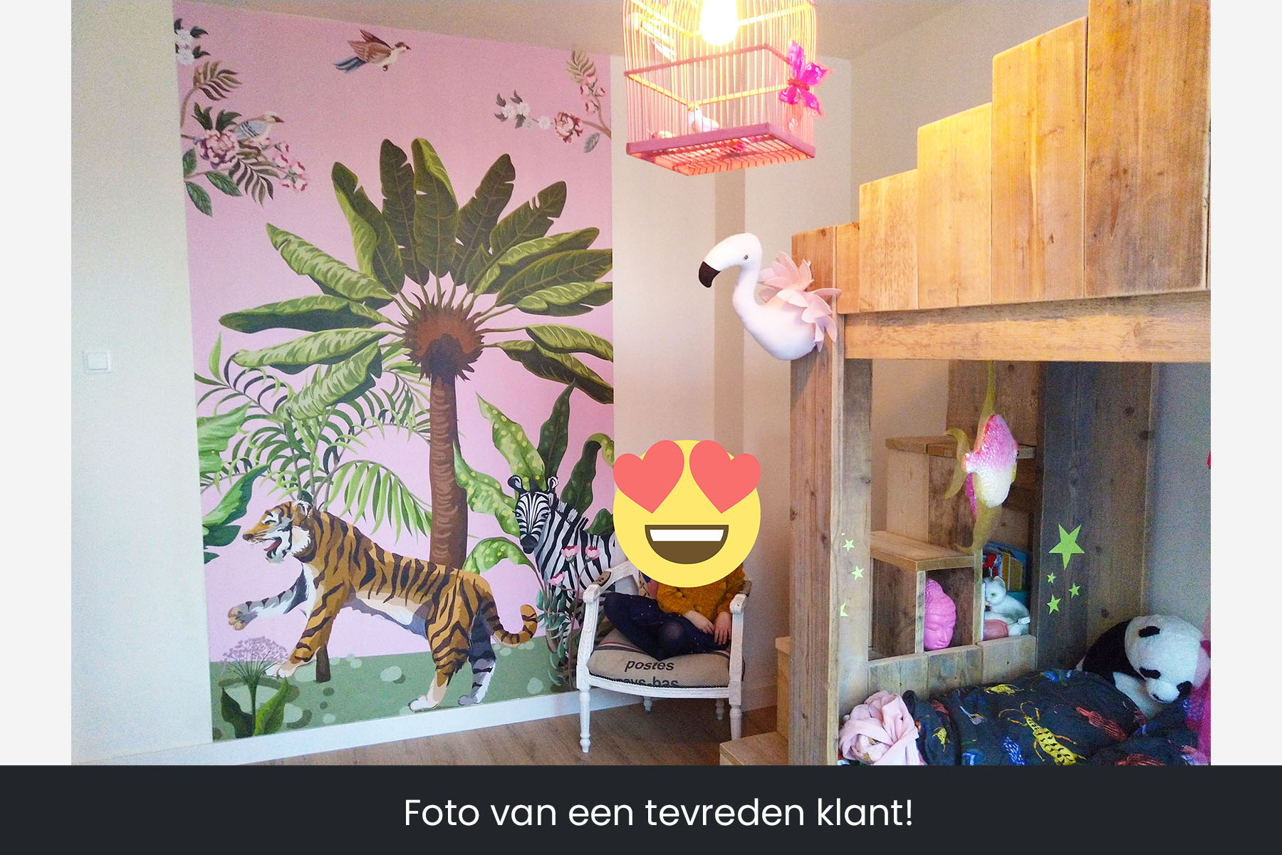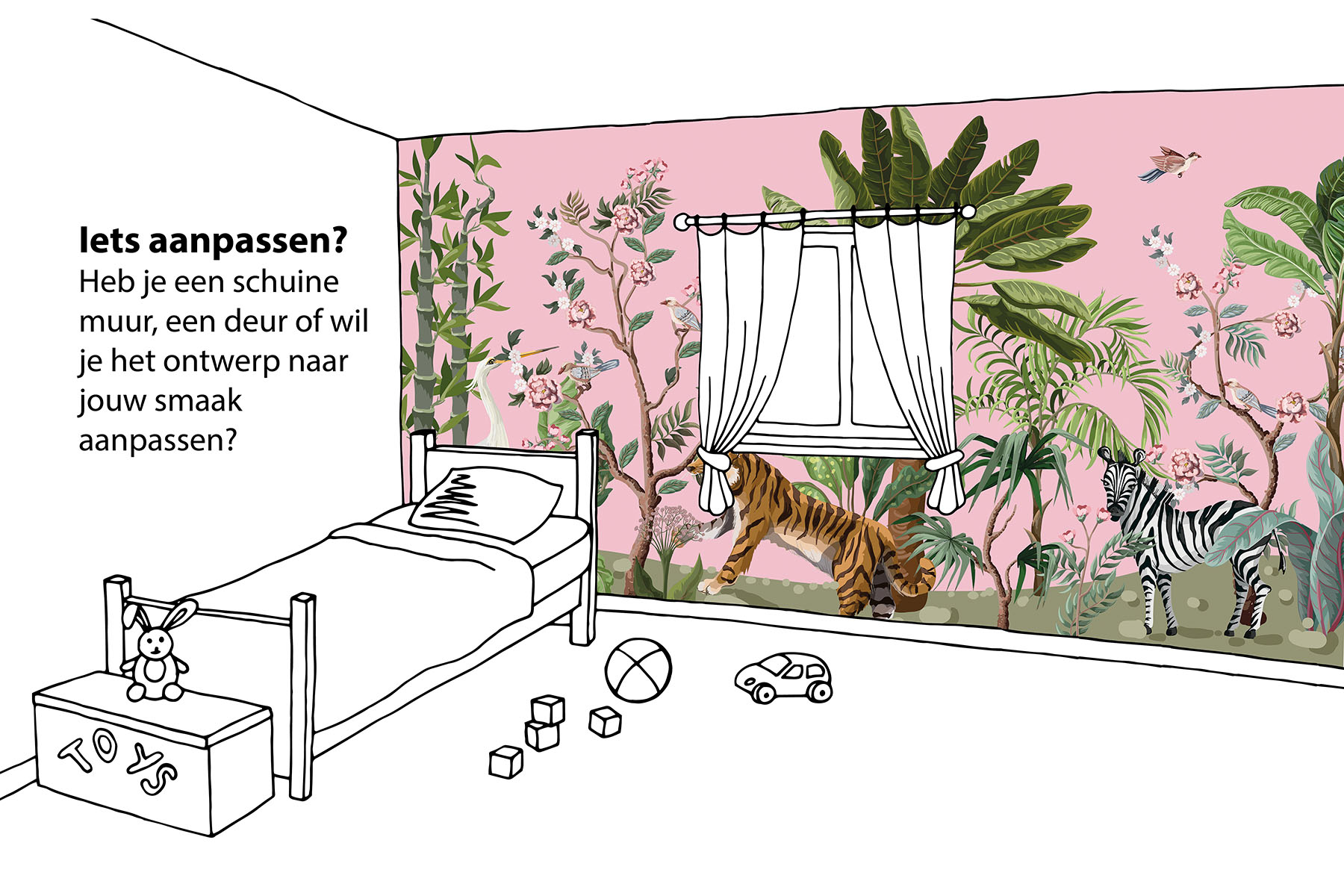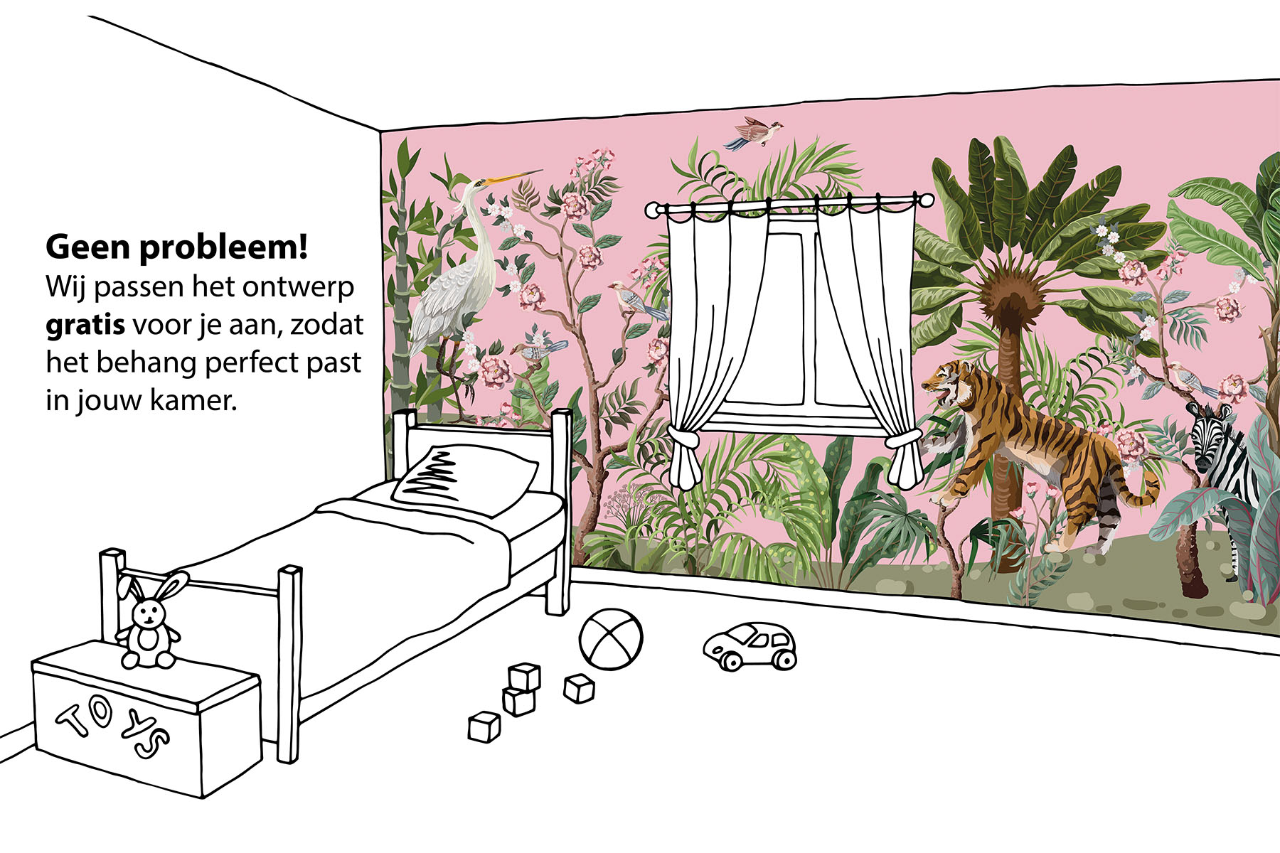 Versier je dochters kamer met dit schitterende jungle behang in Chinese stijl. De kleine vogeltjes, bomen en tijger geven het geheel een speelse, maar ook chique uitstraling. We drukken deze toffe schildering op sterk, krasvast en waterproof behang, zodat je dochter er jarenlang plezier van heeft.[/vc_column_text][porto_block id="4285" name="contact-behang"][vc_empty_space height="20px"][/vc_column][vc_column width="1/2"][porto_block id="1002" name="technische-details-behang"][/vc_column][/vc_row][vc_row][vc_column width="1/2"][vc_column_text]