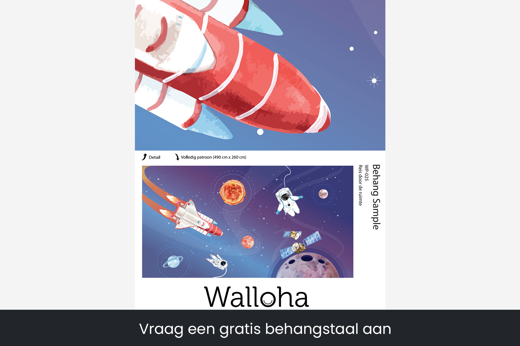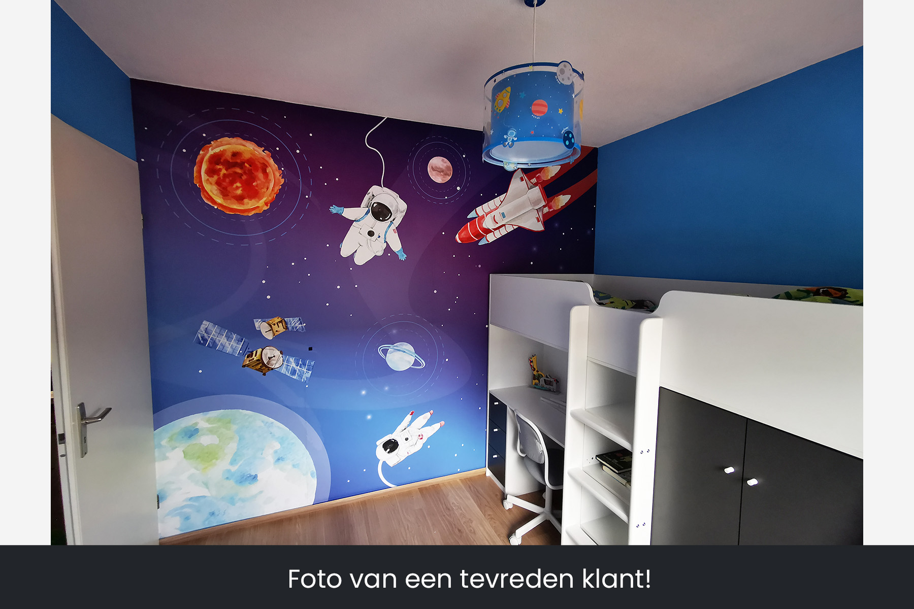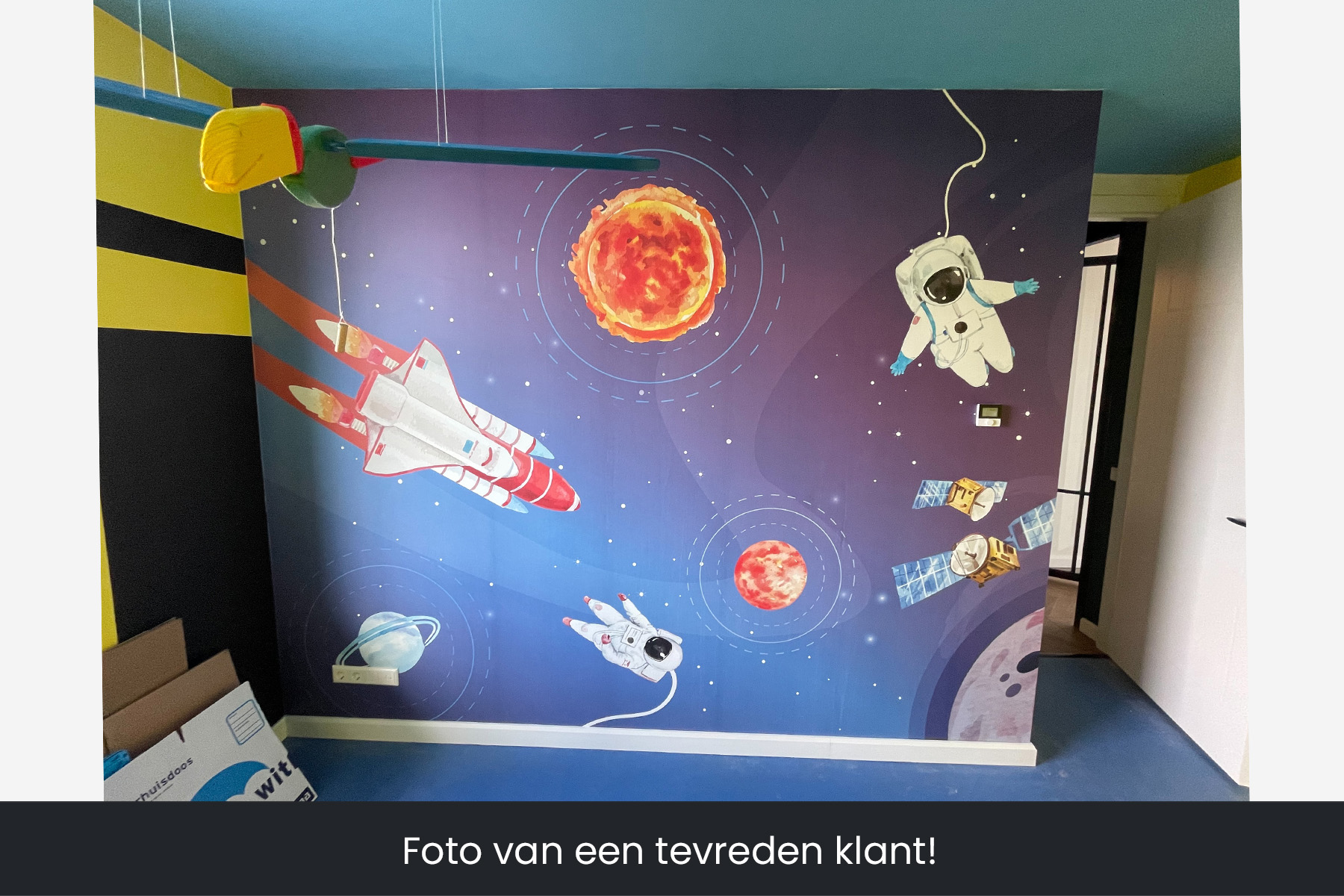 Voor échte ruimtefans hebben we dit toffe ruimte behang ontworpen, compleet met astronauten, een raket en satellieten. We drukken deze toffe schildering op sterk, krasvast en waterproof behang, zodat je kind er jarenlang plezier van heeft.[/vc_column_text][porto_block id="4285" name="contact-behang"][vc_empty_space height="20px"][/vc_column][vc_column width="1/2"][porto_block id="1002" name="technische-details-behang"][/vc_column][/vc_row][vc_row][vc_column width="1/2"][vc_column_text]