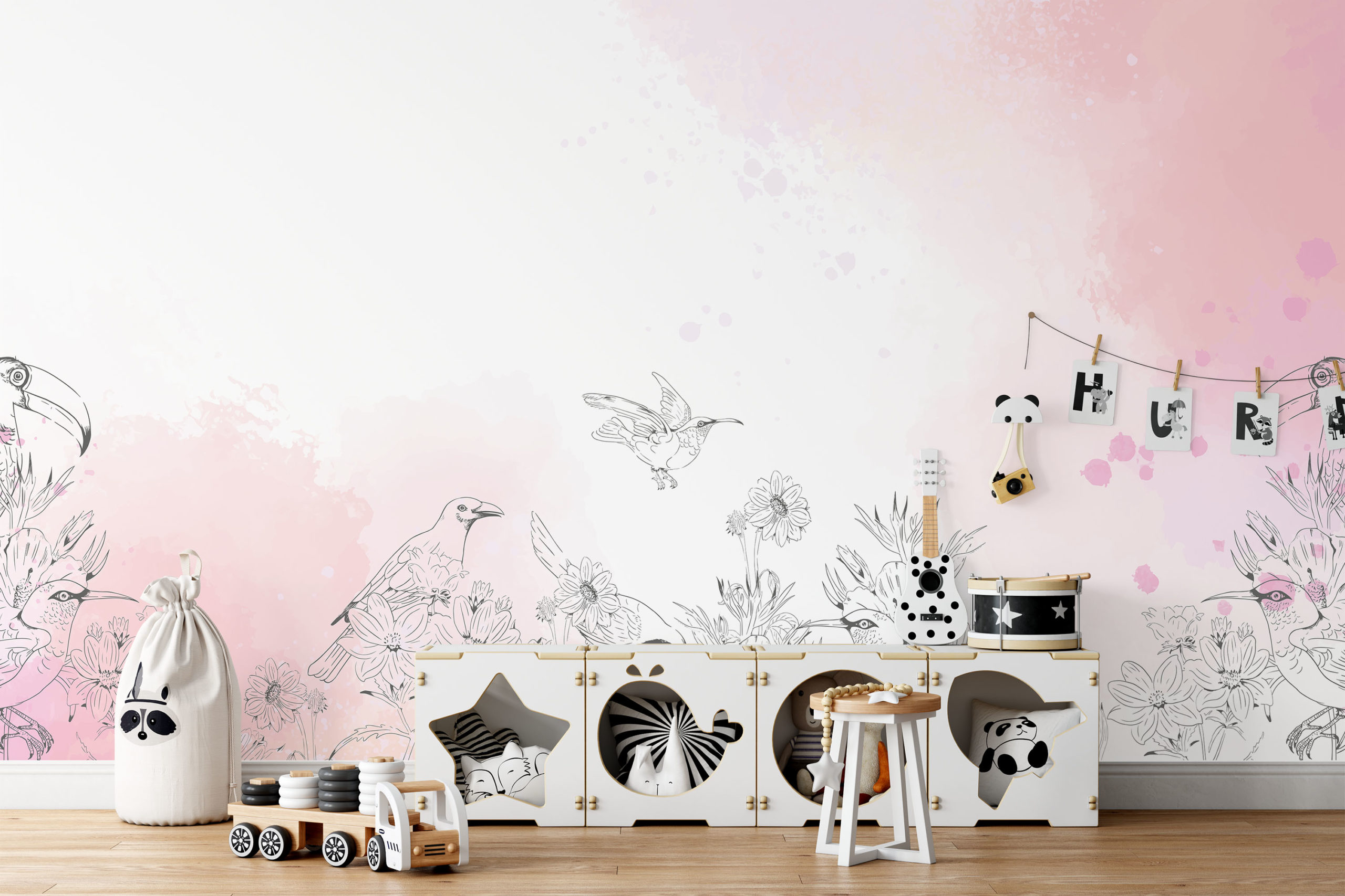 Deze schitterende, subtiele tekening met bloemen en vogels maakt van iedere meisjeskamer een droomkamer. Het zal vooral mooi staan in de babykamer. We drukken deze schildering op sterk, krasvast en waterproof behang, zodat je dochter er jarenlang plezier van heeft.[/vc_column_text][porto_block id="4285" name="contact-behang"][vc_empty_space height="20px"][/vc_column][vc_column width="1/2"][porto_block id="1002" name="technische-details-behang"][/vc_column][/vc_row][vc_row][vc_column][vc_separator color="custom" border_width="2" style="solid" accent_color="#f4f4f4"][vc_empty_space height="5px"][/vc_column][/vc_row][vc_row][vc_column width="1/2"][vc_column_text]