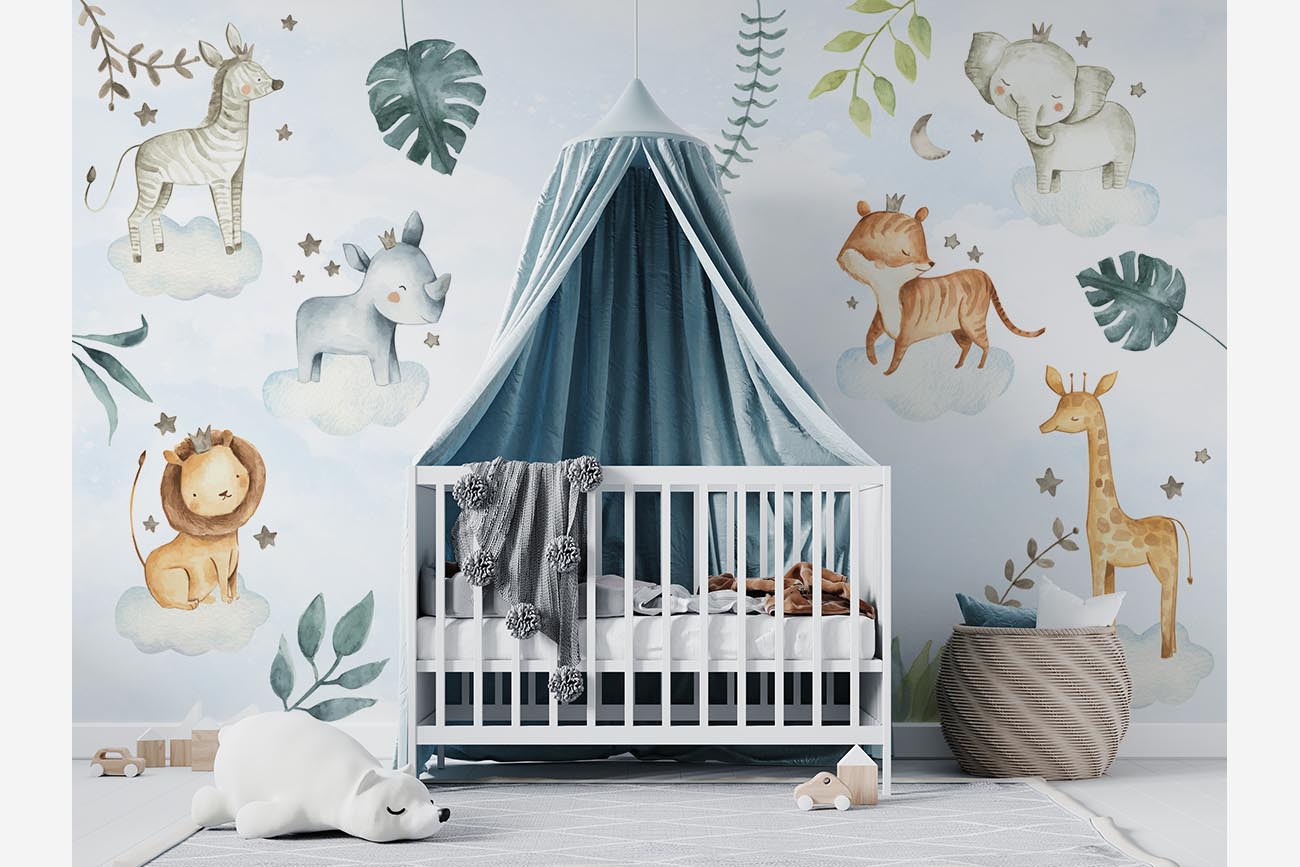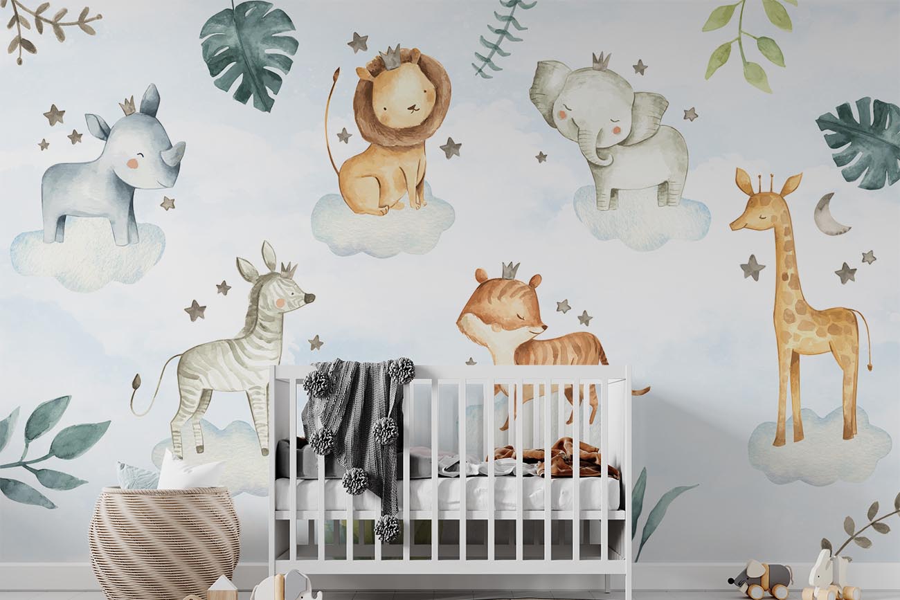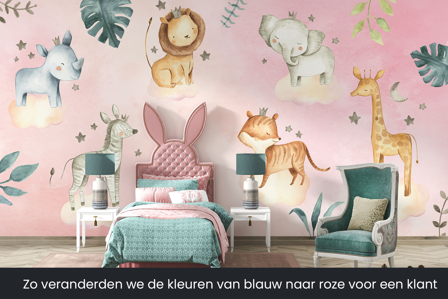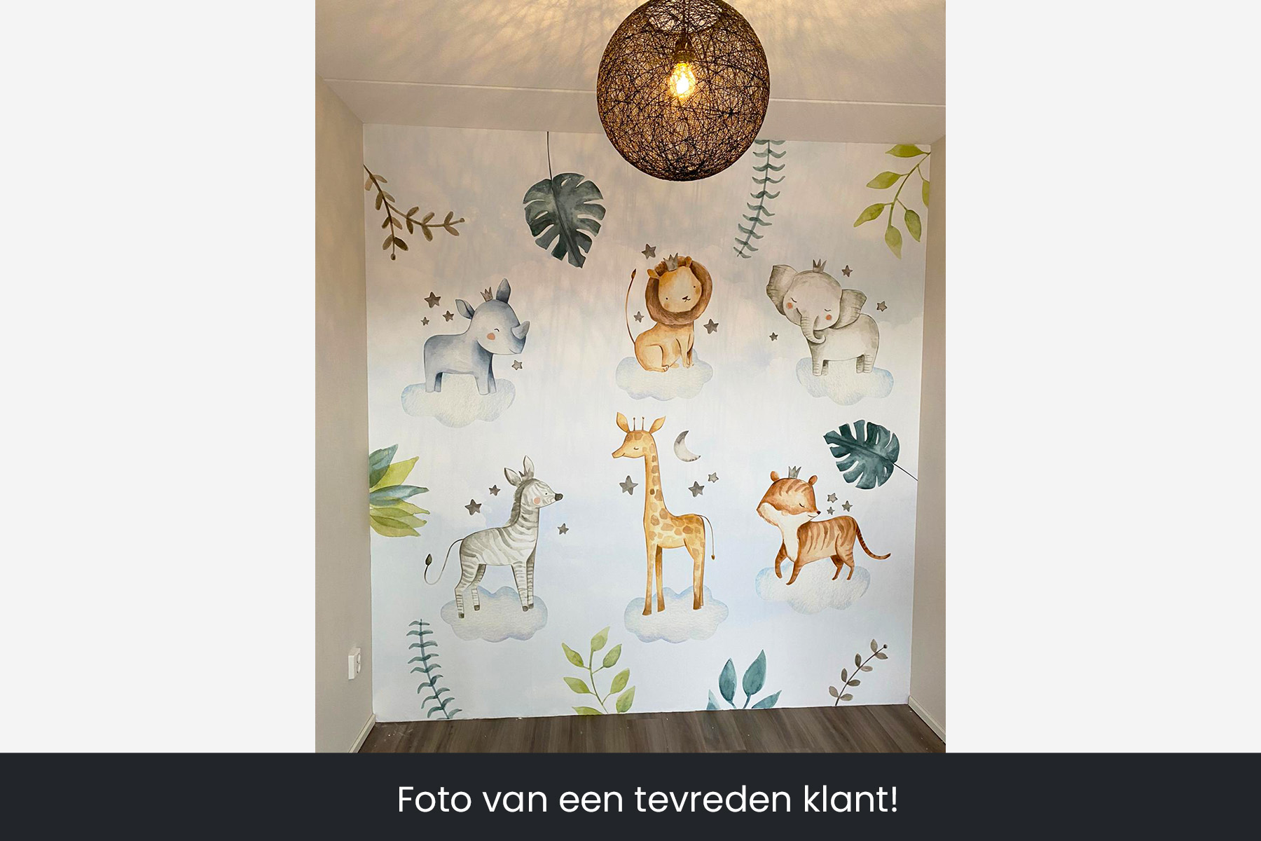 Ahh, wat zijn deze safari dieren lief! Ze zweven door de lucht op wolken. Het is een perfecte print voor een schattige babykamer. We drukken deze toffe schildering op sterk, krasvast en waterproof behang, zodat je zoon of dochter er jarenlang plezier van heeft.[/vc_column_text][porto_block id="4285" name="contact-behang"][vc_empty_space height="20px"][/vc_column][vc_column width="1/2"][porto_block id="1002" name="technische-details-behang"][/vc_column][/vc_row][vc_row][vc_column][vc_separator color="custom" border_width="2" style="solid" accent_color="#f4f4f4"][vc_empty_space height="5px"][/vc_column][/vc_row][vc_row][vc_column width="1/2"][vc_column_text]