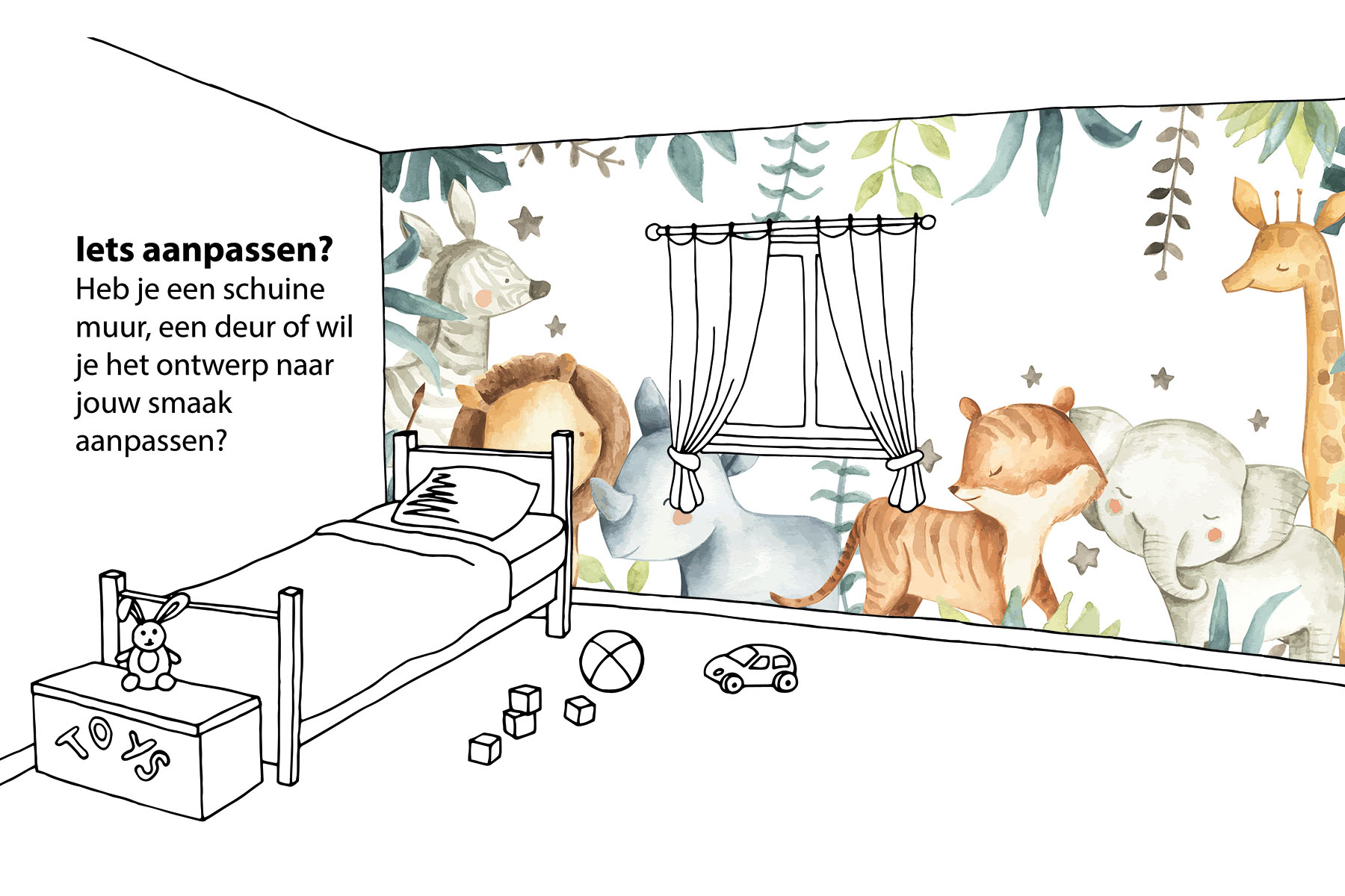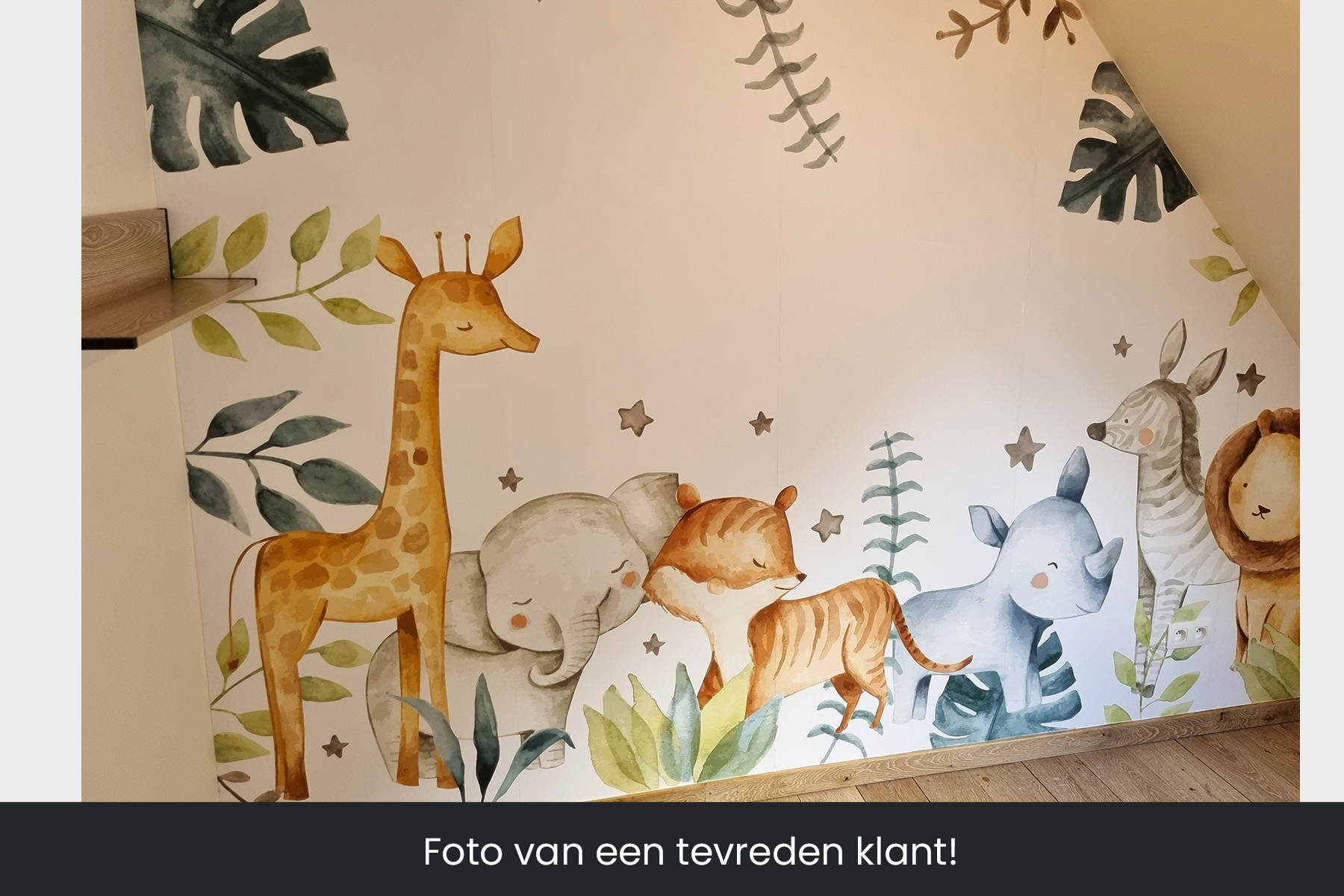 Ahh, wat zijn deze safari dieren lief! Het is een perfecte print voor een schattige babykamer. We drukken deze toffe schildering op sterk, krasvast en waterproof behang, zodat je zoon of dochter er jarenlang plezier van heeft.[/vc_column_text][porto_block id="4285" name="contact-behang"][vc_empty_space height="20px"][/vc_column][vc_column width="1/2"][porto_block id="1002" name="technische-details-behang"][/vc_column][/vc_row][vc_row][vc_column width="1/2"][vc_column_text]
