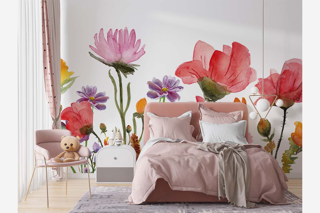 Met dit behang op de muur kun je de frisse geur van wilde bloemen