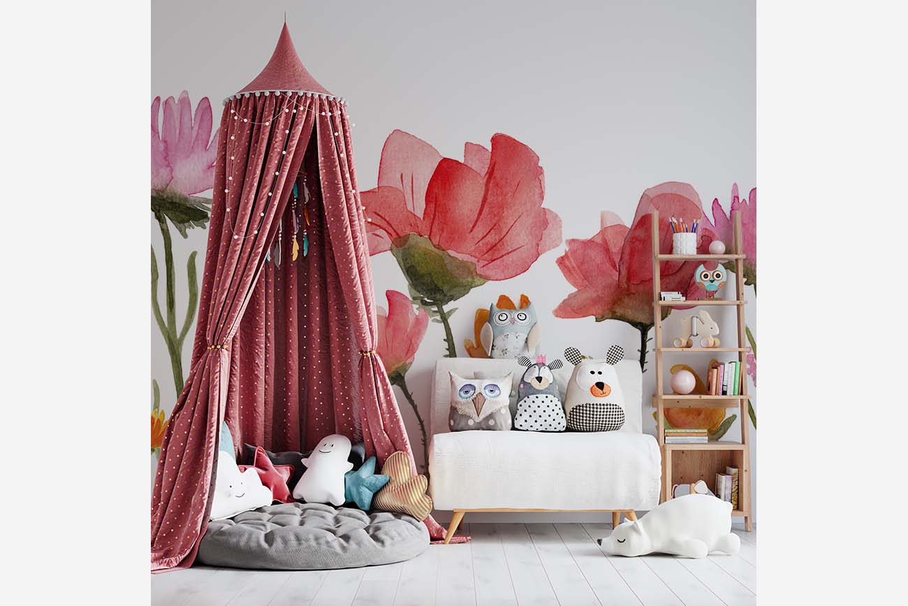 bijna ruiken. We hebben de pracht van de natuur vastgelegd en de elegantie en charme van wilde bloemen vastgelegd in dit behang ontwerp. Het resultaat is een levendige muurschildering met rode klaprozen, blauwe vergeet-mij-nietjes en andere kleurrijke bloemen. We drukken deze prachtige schildering op sterk, krasvast en waterproof behang, zodat je kind er jarenlang plezier van heeft.[/vc_column_text][porto_block id="4285" name="contact-behang"][vc_empty_space height="20px"][/vc_column][vc_column width="1/2"][porto_block id="1002" name="technische-details-behang"][/vc_column][/vc_row][vc_row][vc_column][vc_separator color="custom" border_width="2" style="solid" accent_color="#f4f4f4"][vc_empty_space height="5px"][/vc_column][/vc_row][vc_row][vc_column width="1/2"][vc_column_text]