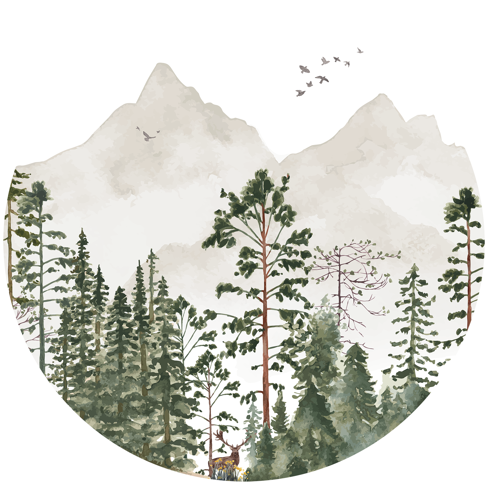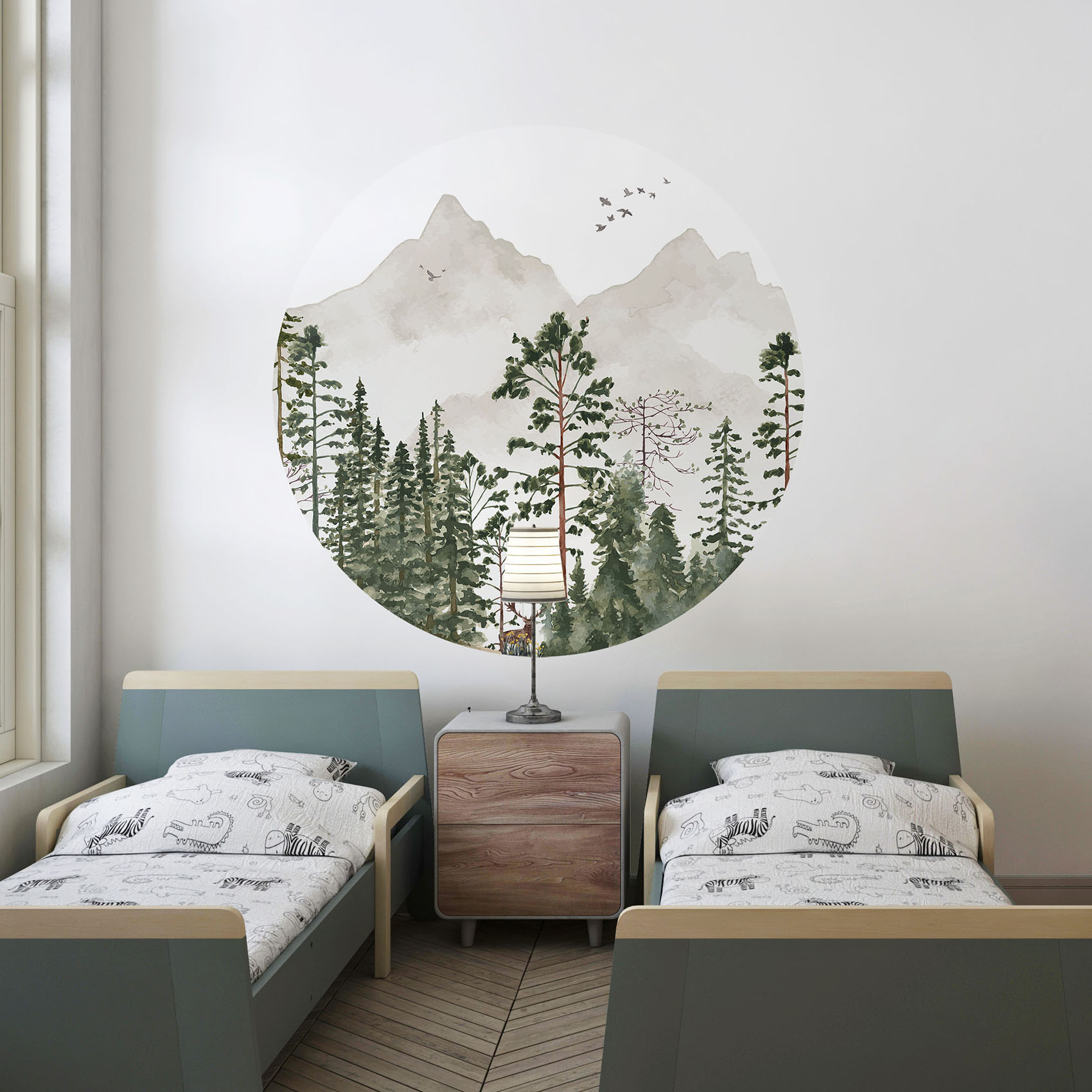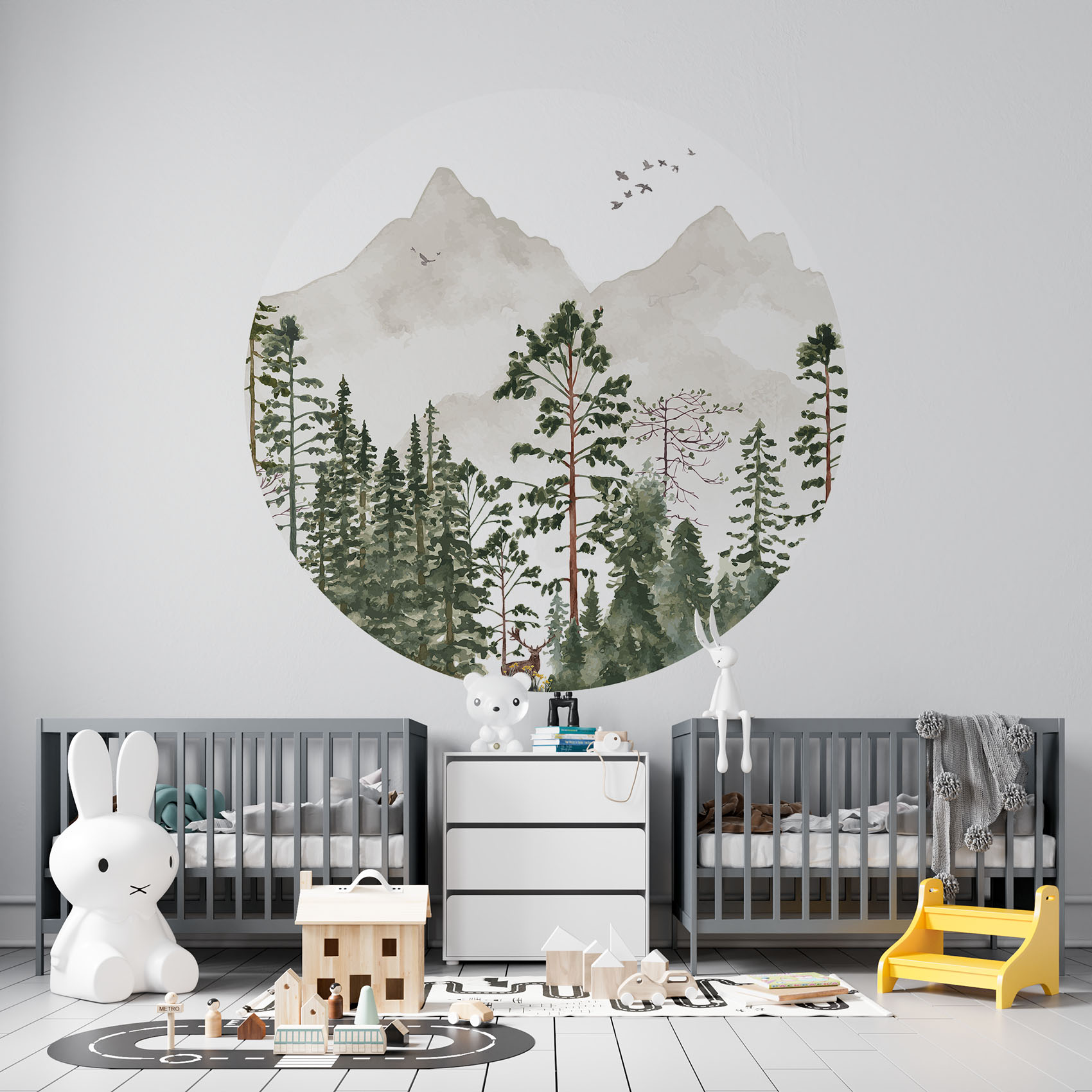 In het donkere woud valt je kindje in slaap tussen de bomen, waar ook enkele bosdieren zich schuilhouden. Geef de kinderkamer een instant sfeerboost met deze behangcirkel!