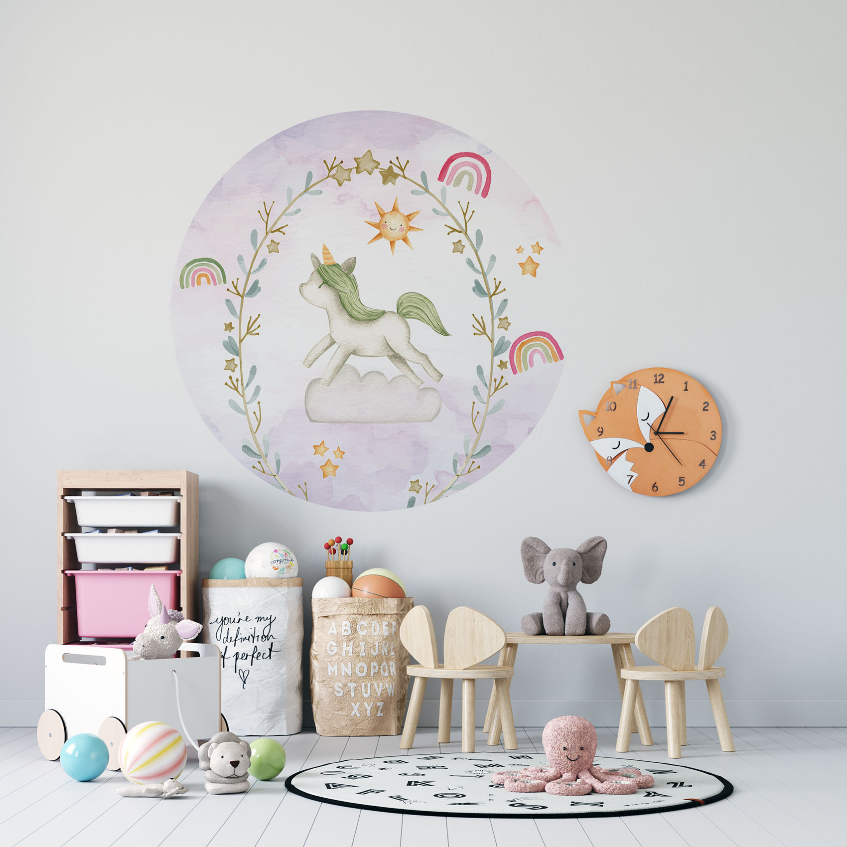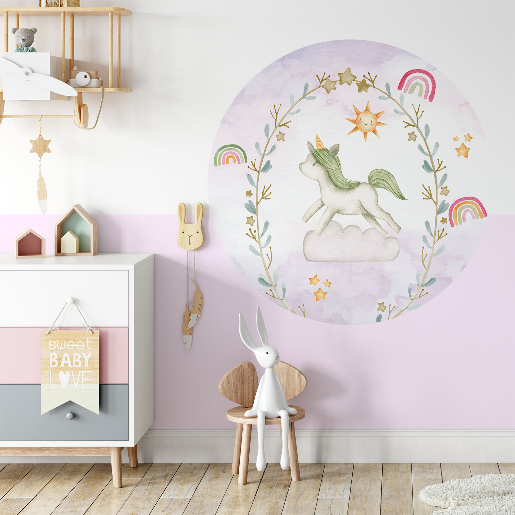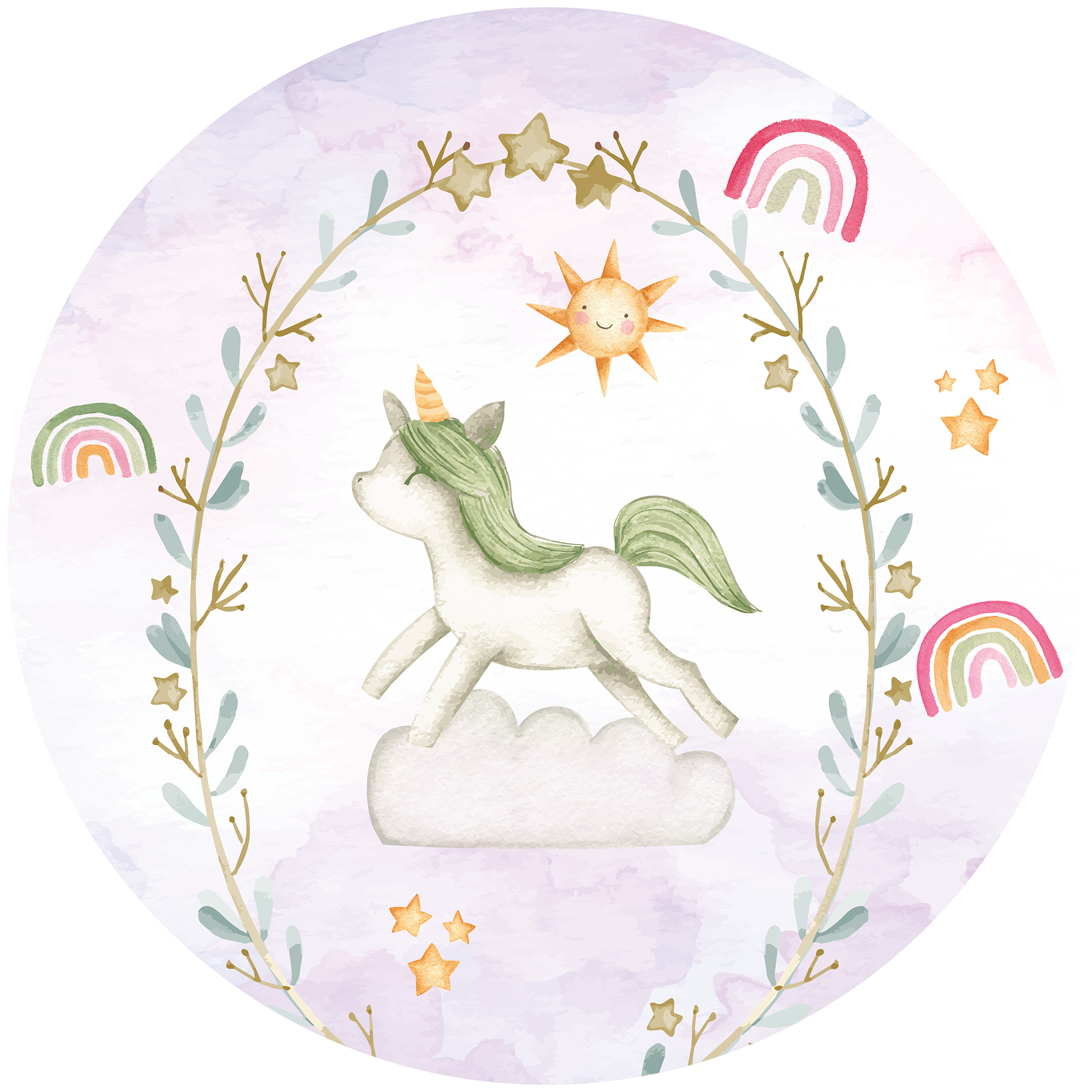 Deze kleine baby eenhoorn springt van wolk naar wolk. Met deze schattige eenhoorn behangcirkel maak je ieder meisje blij. Geef de kinderkamer een instant sfeerboost met deze behangcirkel!